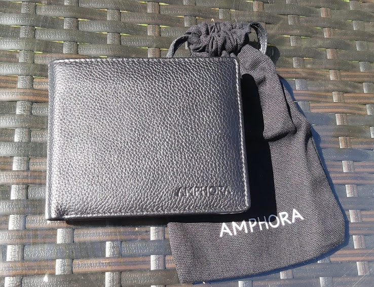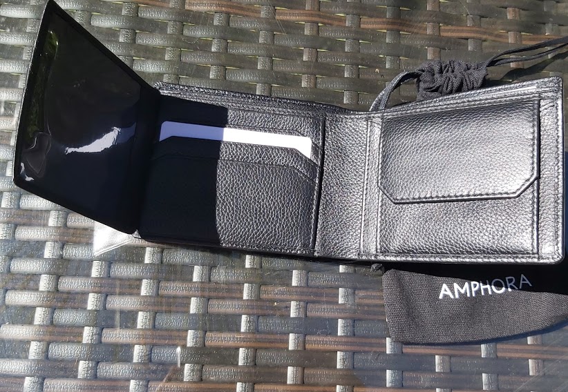 Billetera Amphora hombre, de cuero color negro. Modelo Ricardo, interior con tarjetero y monedero.