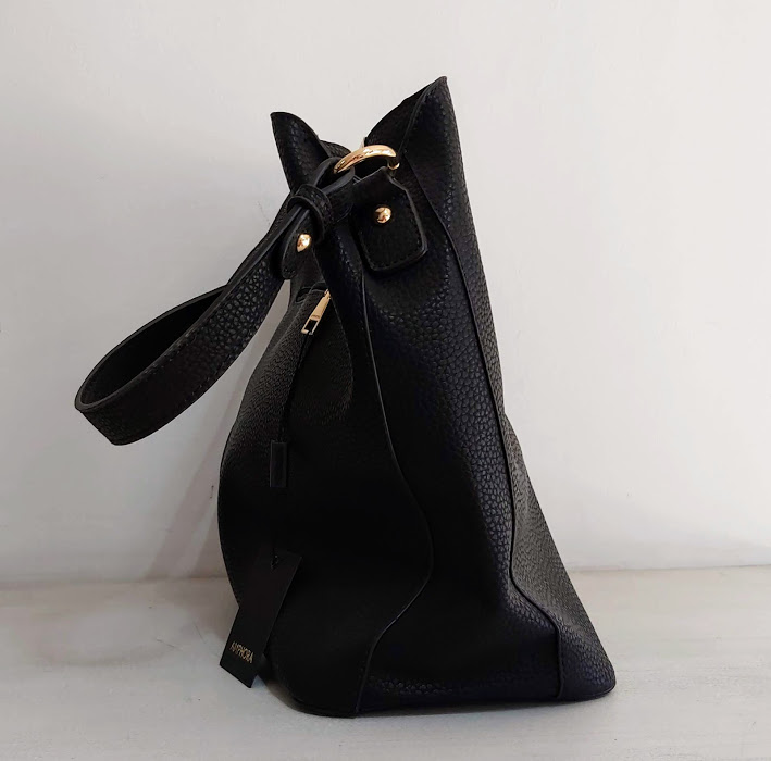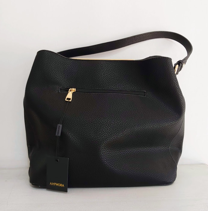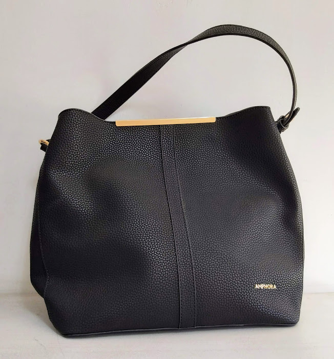 Cartera Amphora modelo Fista tipo bolso en negro, con un asa y una división principal. Incluye correa larga.