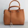 Cartera Amphora, modelo Leoni en color café con diferentes texturas y detalles en dorado, dos asas y tres divisiones. Incluye correa larga