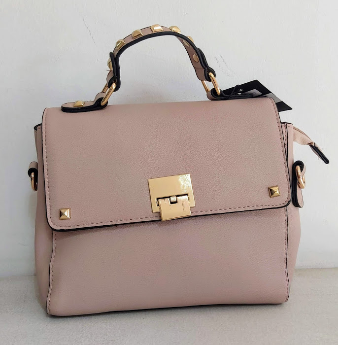 Cartera Amphora, modelo Tenerife en color palo rosa con detalles en tachas doradas. Incluye correa larga.