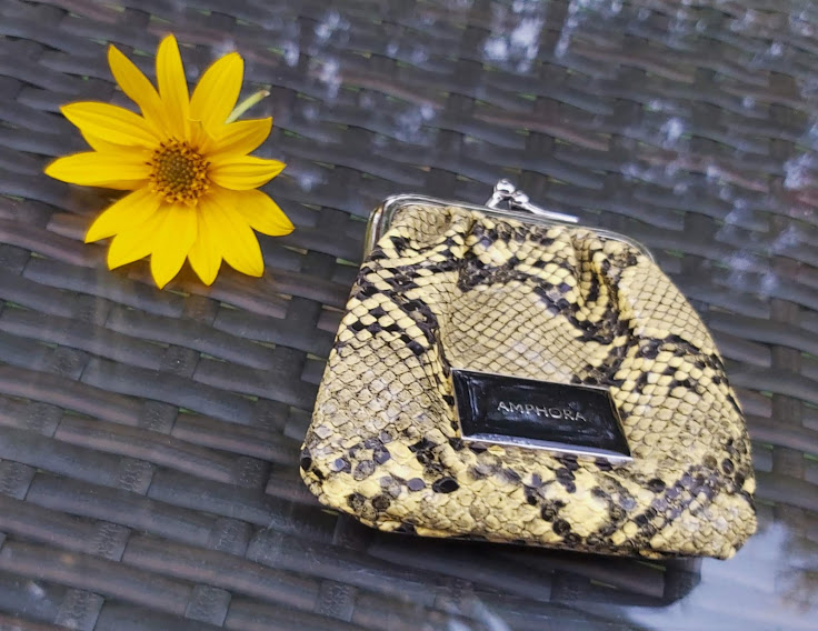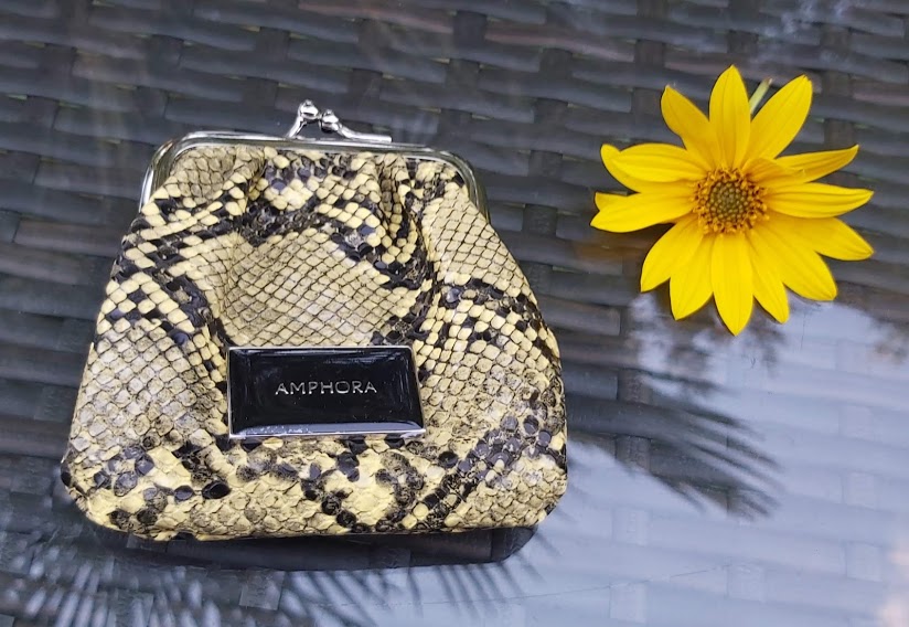 Monedero Amphora modelo Otta, color amarillo claro con negro.