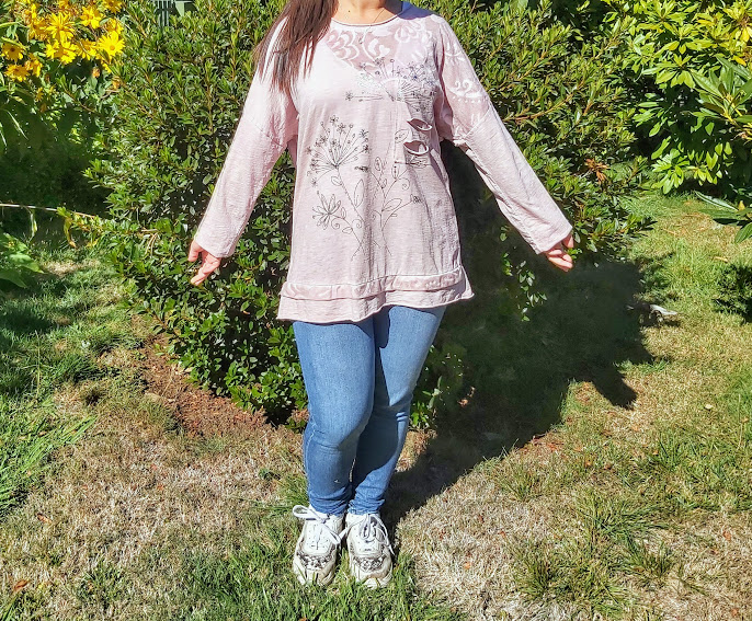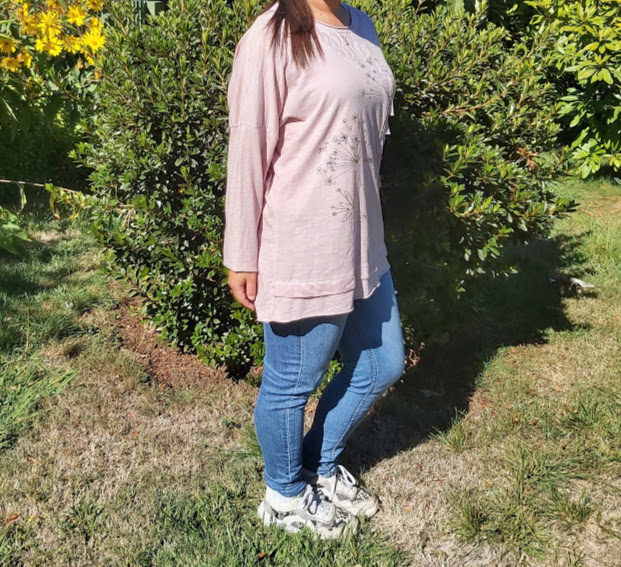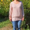 Polera Italiana color palo rosa con aplicación de lúrex en plateado.
